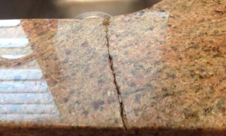 Granite kitchen countertops cracks. Granite countertops are installed in more homes today than ever before. Granite countertops are relatively easy to take care of and such preventive maintenance as cleaning up spills quickly and avoiding setting hot pots on them will keep the surface in good repair. Granite crack repair in front of sink duration.
